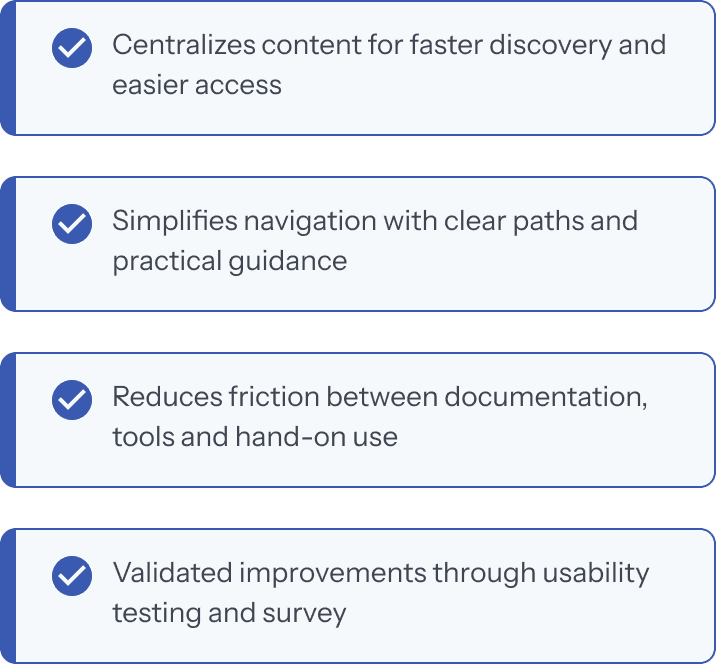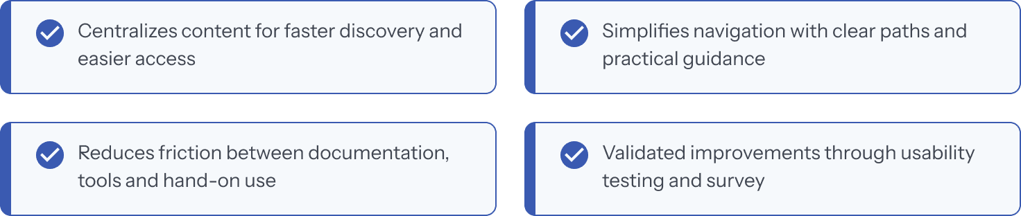 Transforming fragmented developer documentation into a seamless, intuitive hub that reduced onboarding friction and improved content discoverability.