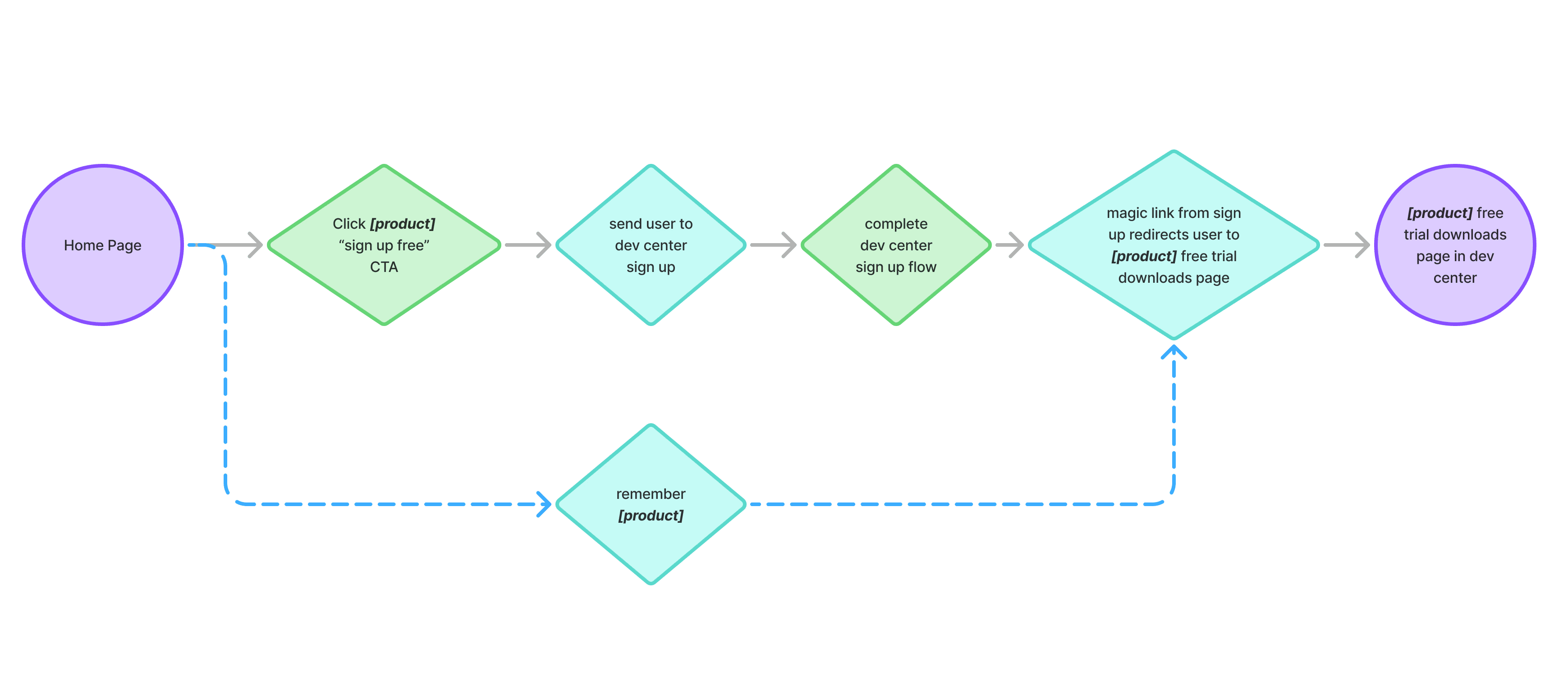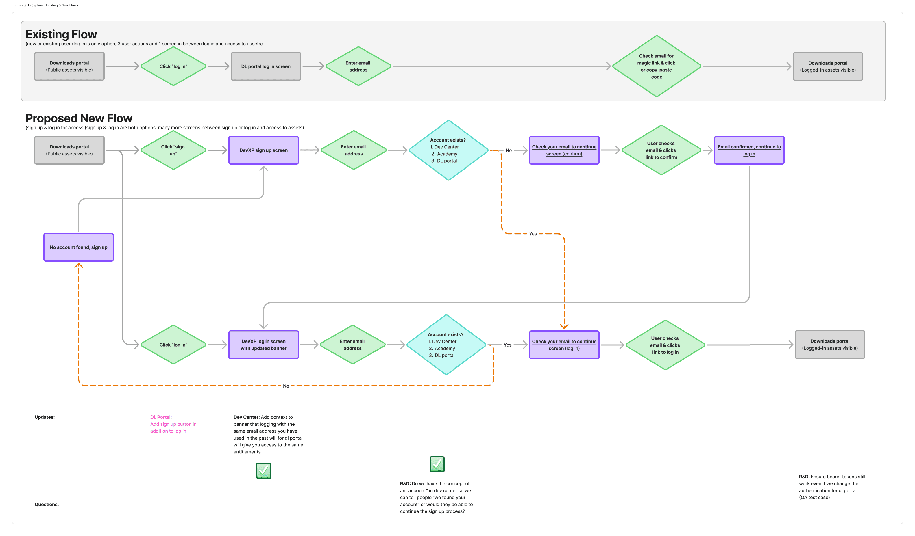 We created a user flow to turn research insights into a clear path through the Developer Center. It mapped how developers move from landing on the site to completing a task, helping identify friction points and key decision moments.