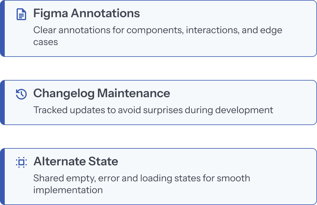 From the start of the project, I worked closely with developers to align on technical constraints and feasibility. Regular collaboration helped reduce rework and move faster.
