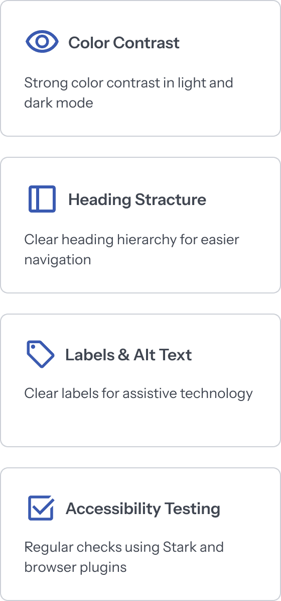 Accessibility was built into every design decision to ensure all users could navigate and use the Developer Center with confidence.
