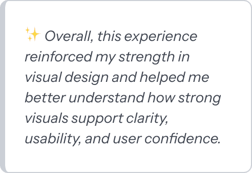 This project resulted in a well-researched, high-fidelity prototype for a UX/UI learning hub designed specifically for beginners. The final deliverables included responsive screens, documented research insights, and clear design decisions — all of which were handed off to stakeholders at the end of my internship to support future development and iteration. What I learned: