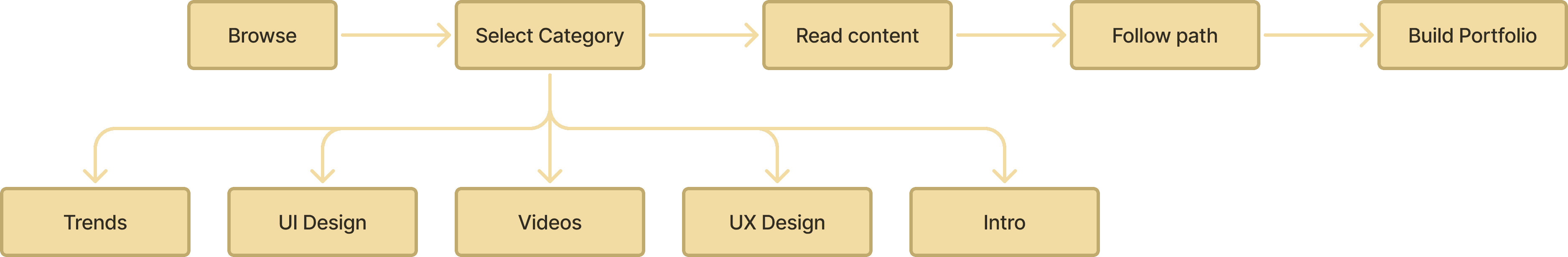 I mapped out a basic flow that showed how Sarah might move through the platform. Keeping it simple helped ensure that content discovery and progress tracking would feel easy.